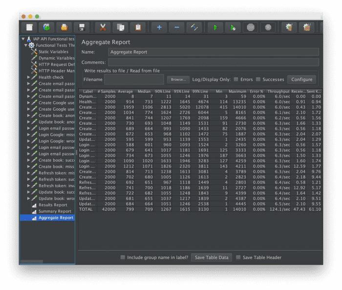 Finally we can see the JMeter report with the results of the load test, where we can see the operations throughput and error rate, among other available data.
